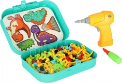 Mosaïque créative en valisette avec visseuse électrique – jeu de construction pour enfants – Dinosaure