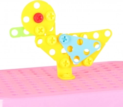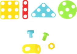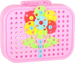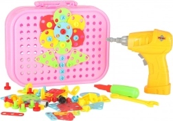 Cette mosaïque créative combine pièces colorées, vis et outils pour que les enfants puissent composer des motifs, des animaux et de simples modèles 3D. La perceuse électrique à piles et le tournevis transforment le jeu en véritable aventure de bricolage et favorisent la coordination œil–main.