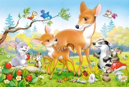 Ce puzzle grand format est parfait pour les premières expériences. Grâce aux pièces plus grandes, les enfants manipulent facilement et apprennent à reconnaître formes et couleurs. Une fois assemblé, vous obtenez un joli motif de biche qui décorera toute chambre d’enfant.