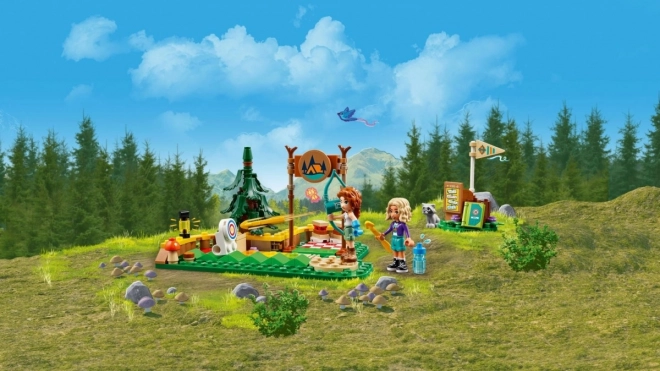 Les jeunes explorateurs peuvent imaginer d’innombrables histoires au pas de tir avec ce set. Autumn a deux expressions différentes qui changent lorsqu’elle vise la cible. Nova obtient un badge de tir à l’arc pour son carnet. Ensuite, elles se reposent autour d’un sandwich convoité par un raton laveur gourmand !