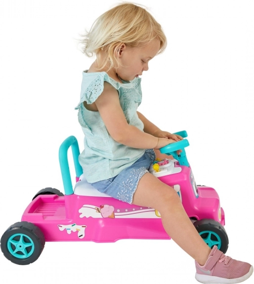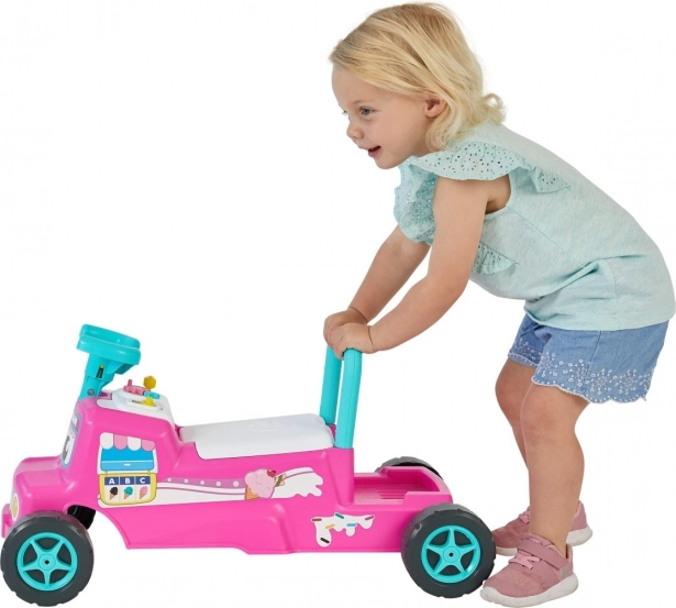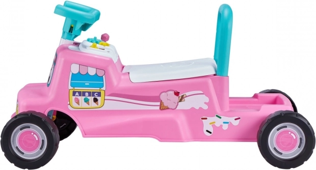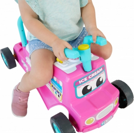 Le porteur rose au look de petite voiture à glace offre aux enfants de nombreuses occasions de s’amuser et d’imaginer des jeux de vendeur de glaces. Grâce à son siège solide, à son volant avec klaxon et à son dossier arrière, il aide à développer la coordination, l’aisance des mouvements et l’imagination.