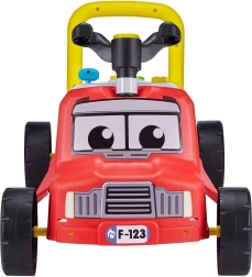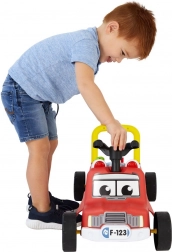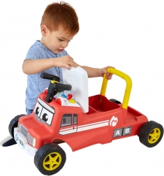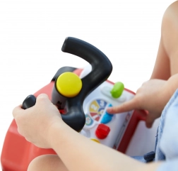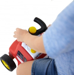 Le volant avec klaxon et commandes colorées stimule le jeu imaginatif et la motricité fine. La poignée arrière sert d'appui aux plus petits lors de l'apprentissage de la marche, tandis que les plus grands apprécieront la conduite en « poussant » avec les pieds.