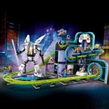 Ce parc d’attractions futuriste offre aux enfants dès 8 ans le meilleur de LEGO CITY. Une montagne russe fonctionnelle avec trois wagonnets, un thème robotique et des décors détaillés invitent à des heures d’amusement imaginatif. On y trouve aussi un salon de jeux avec consoles, une arène d’e‑sport et un bar à sorbets.