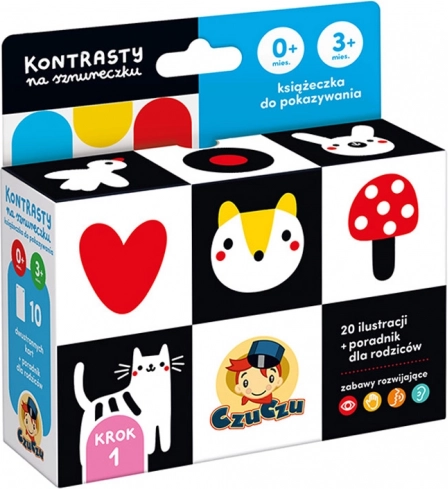 Comment jouer avec bébé ? Avec amour, douceur et à l’aide d’outils pensés pour les tout-petits ! Il est temps pour un premier livre : lisez ensemble dès les premiers jours de vie. C’est une manière très agréable de soutenir activement le développement de votre bébé et de tisser un lien unique entre vous. Contrastes sur cordon est un petit livre à cordon extraordinairement mignon pour les tout jeunes bébés.