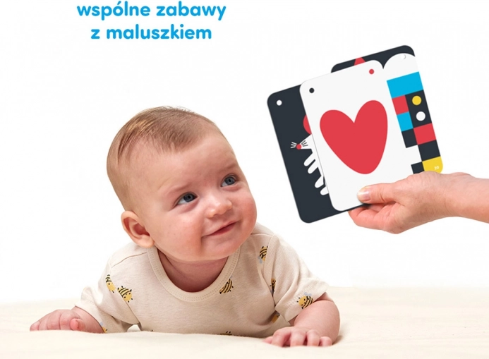 Tous les sens travaillent en même temps ! Prenez votre enfant dans vos bras, parlez d’une voix douce, déplacez lentement et régulièrement les illustrations devant ses yeux. Votre tout-petit aimera être près de vous et écouter votre voix.