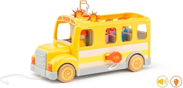 L'autobus scolaire joyeux de la marque Woody est conçu pour amuser et développer les capacités de vos enfants. Cet autobus en plastique est non seulement sûr, mais aussi attrayant grâce à ses personnages colorés à l'intérieur, qui peuvent être déplacés et agencés autour. Grâce à la ficelle pour tirer, les enfants apprennent facilement la coordination des mouvements, et les sons et lumières intéressants captent leur attention.
