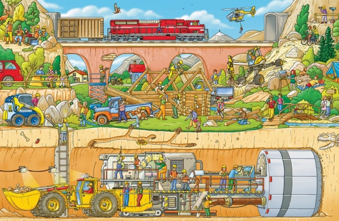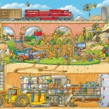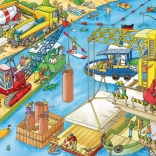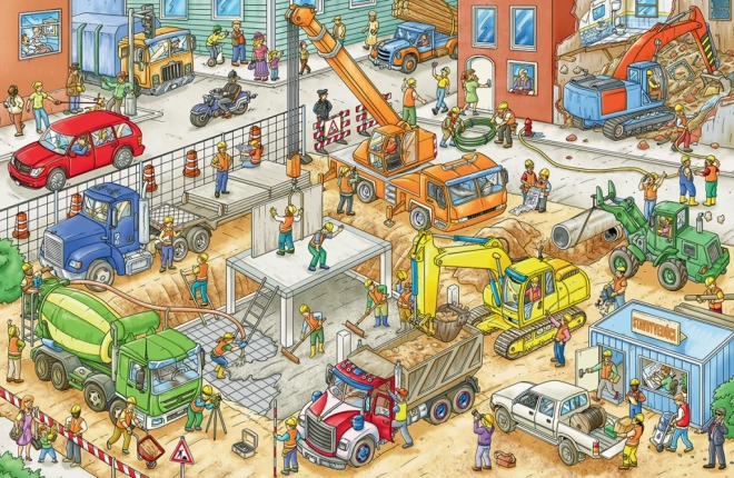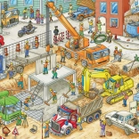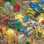 Le livre présente des scènes richement illustrées qui représentent l'environnement vivant d'un chantier avec différentes machines de construction.