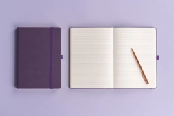 Carnet ligné Aprint Neo en couleur violette, il offre une combinaison de classicisme et d’élégance. Sa surface est non seulement très prisée, mais permet également un marquage facile des logos d’entreprise avec une texture fine.
