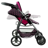 Avec son design noir et rose accrocheur, la poussette Alice est non seulement belle, mais aussi fonctionnelle.
