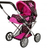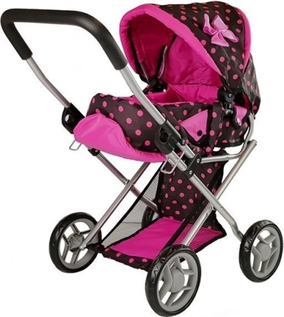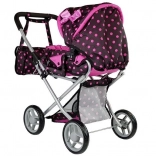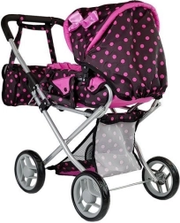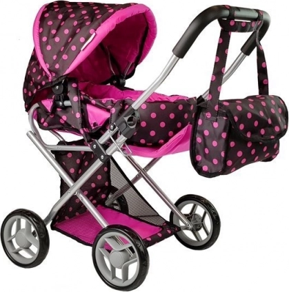 La poussette Alice pour poupées est légère, facile à manœuvrer et parfaite pour toutes les petites « mamans ». Sa structure en métal résistant assure stabilité et longévité. Le design noir et rose à pois donne une touche élégante, tandis que la fonction pliable permet un transport et un rangement aisés.