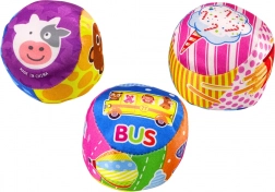 La balle douce ornée de motifs colorés représentant des animaux et des fruits stimule l’imagination de l’enfant et attire son attention grâce à des couleurs vives et intenses. Le matériau sûr et moelleux la rend idéale pour les petites mains, et sa conception légère facilite la prise en main, le roulage et le lancer.