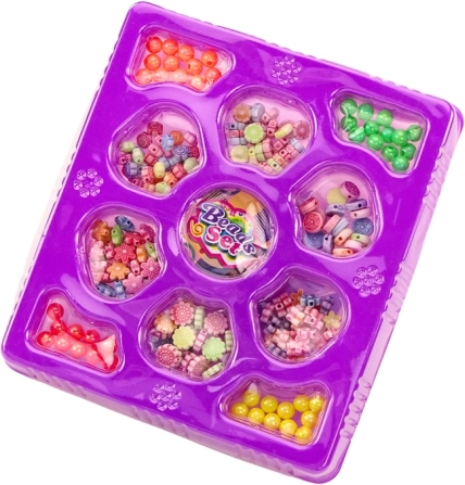 Le kit permet de réaliser divers bijoux, tels que des bracelets et des colliers. Les enfants peuvent inventer leurs propres motifs, ce qui développe leur créativité, leur dextérité manuelle et leur coordination œil-main.