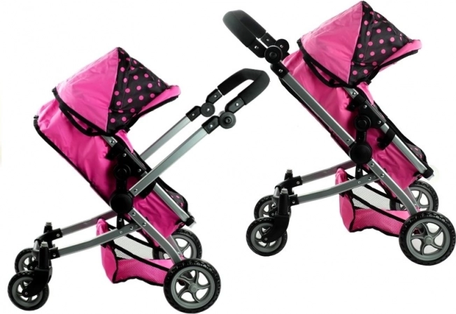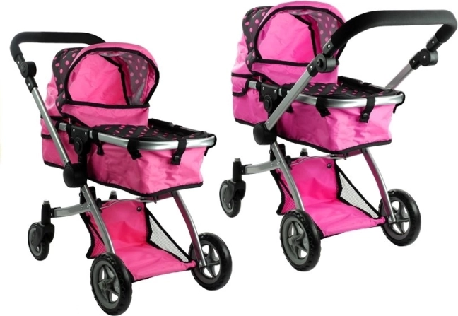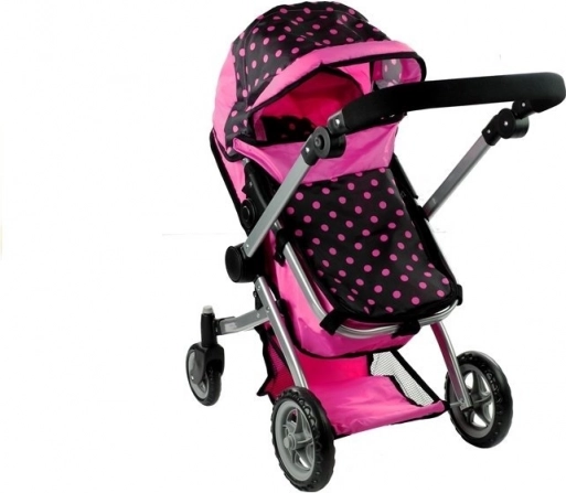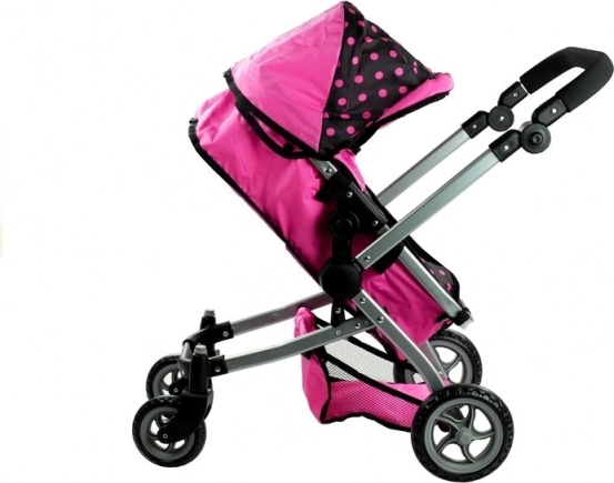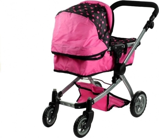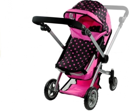 La poussette pour poupées Alice 2-en-1 séduit par son rendu réaliste et sa conception polyvalente. En un clin d’œil, transformez-la d’une poussette profonde avec nacelle en poussette sport. L’association du rose et du noir à pois apporte une touche ludique et moderne, tandis que la structure métallique durable et les tissus de qualité garantissent une longue durée de vie.