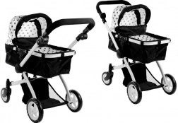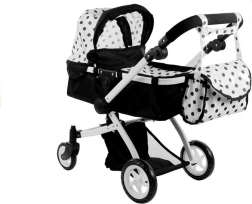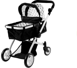 La poussette pour poupées ALICE au design élégant noir‑blanc à pois offre une solution 2‑en‑1 universelle – passez en un instant de la nacelle au siège sport. Son châssis léger mais robuste en tubes d’aluminium, ses roues en mousse et gomme pour un roulement silencieux à l’intérieur et fluide à l’extérieur, ainsi que le verrou anti‑pliage involontaire garantissent un jeu sûr et confortable.