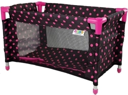 Vous cherchez un lit de poupée à la fois mignon et pratique ? Le modèle Alice en noir‑rose à pois offre aux enfants un jeu réaliste de soins pour bébé. Grâce aux parois en maille, les enfants gardent un œil sur leur poupée et peuvent la surveiller facilement même pendant le jeu.