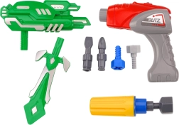 Le kit comprend tout le nécessaire pour jouer immédiatement : un robot à assembler, une perceuse-jouet avec embouts, une épée et une armure ainsi que des piles de type AG13. Sa fabrication robuste en plastique le rend idéal pour un jeu quotidien et le développement de la pensée technique.
