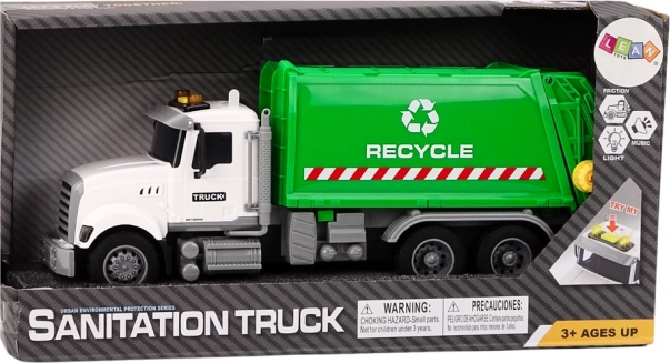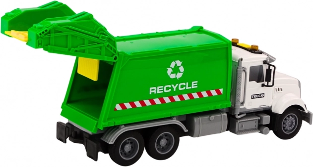 Le jouet camion poubelle en blanc et vert imite parfaitement un vrai véhicule, responsable de la collecte des déchets. Son aspect réaliste et sa partie arrière ouvrable permettent aux enfants de simuler la collecte des déchets, une excellente occasion d'apprendre sur la responsabilité et l'importance du recyclage.