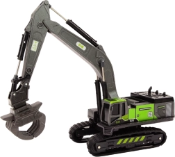 La pelle sur chenilles avec grappin métallique, lame ou foret est un jouet idéal pour tous les petits amateurs d'engins de chantier. Grâce à ses couleurs vives, où le noir contraste avec les éléments verts, elle offre une impression dynamique et attrayante. La construction est réalisée avec un souci du détail, ce qui donne au jouet un aspect réaliste.