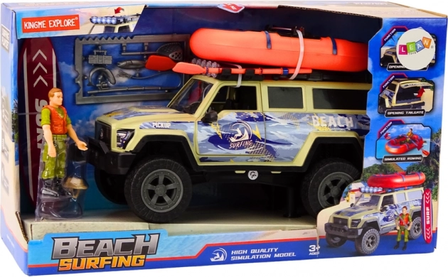 La voiture tout-terrain Serfera est un jouet idéal pour les jeunes passionnés d’aventures aquatiques. Le véhicule couleur sable, marqué Serfera, possède des phares sur le toit qui s’allument en appuyant sur un bouton et émet des sons de moteur réalistes. Sur le toit se trouve également un canot avec des rames, ajoutant encore plus de réalisme au jeu. Les portes et le coffre ouvrants permettent de placer facilement des figurines à l’intérieur du véhicule.
