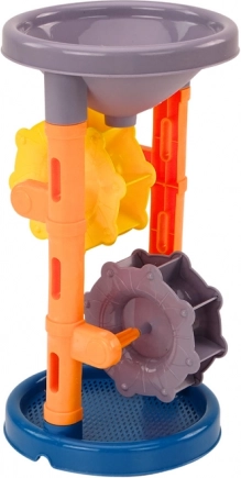 Le set de jouets de sable avec moulin est un équipement indispensable pour tout petit amateur de plage ou de jeux dans le sable. L’élément central est un moulin avec deux roues, qui a une double fonction : d’un côté un tamis pour filtrer le sable et de l’autre un entonnoir.