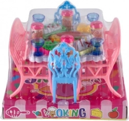 Les éléments roses et bleus, associés à la table blanche, créent un mélange de couleurs attrayant. Les mini-accessoires réalistes apportent la touche parfaite aux jeux de restaurant.