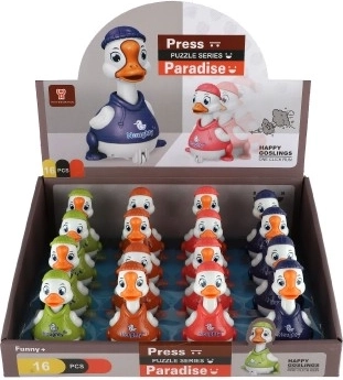 Collection en rouge, orange, vert et bleu, idéale à collectionner et pour jouer ensemble. Chaque canard a un design ludique qui plaît aux enfants.