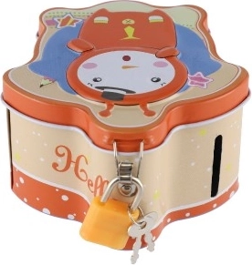 La tirelire est équipée d’un cadenas avec clés, pour que les pièces économisées restent en sécurité même hors de la surveillance des adultes.