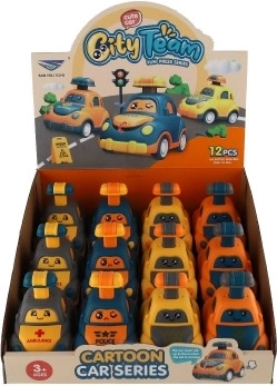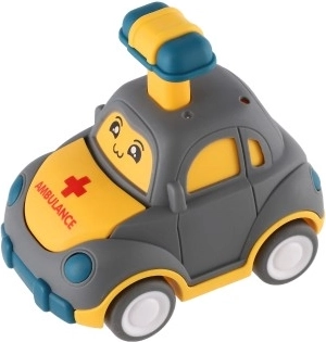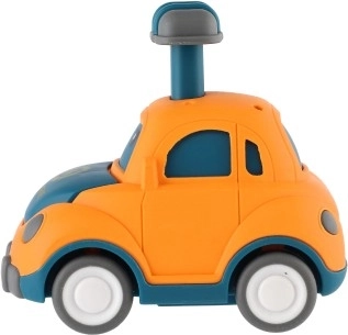 Adorable petite voiture en plastique avec visage qui ravira tous les petits pilotes. Il suffit d’appuyer sur le levier sur le toit et la voiturette part toute seule grâce à l’inertie. Son format compact de 9 cm est idéal pour les petites mains; sa conception sûre et ses quatre variantes (police, ambulance, taxi, etc.) stimulent l’imagination et la motricité. Convient aux enfants à partir de 3 ans.