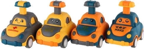 Amusez-vous avec les voiturettes Appuie et pars. Les enfants appuient simplement sur le bouton/levier sur le toit et la voiture avance grâce à l’inertie. Couleurs gaies, visages adorables et roulement fluide des roues invitent au jeu à la maison et en voyage.