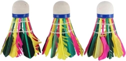 Ensemble de trois volants de badminton en plumes pour le jeu récréatif et l’entraînement. Grâce aux plumes de qualité et à la base dure, les volants offrent un vol stable, d’excellentes caractéristiques de vol et un rebond fiable. Les couleurs vives améliorent la visibilité en extérieur comme en intérieur.