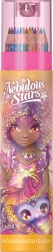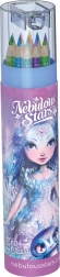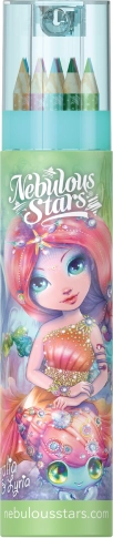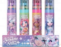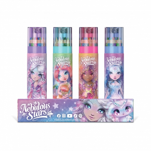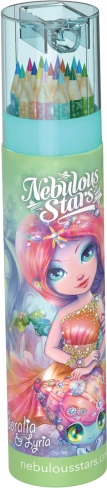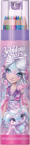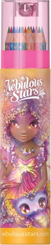 Ensemble élégant de 18 crayons de couleur dans un tube pratique NEBULOUS STARS, complété par 1 crayon à papier et un taille-crayon intégré. Coloris du tube : violet, vert, rose, bleu.