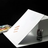 La toile est apprêtée trois fois à l’acrylique avec un mélange au blanc de titane, pour des couleurs plus couvrantes, un séchage plus rapide et une bonne tenue même en superpositions et impastos lourds. Le format 30 × 40 cm se glisse facilement dans une planche à dessin ou un sac; les panneaux peuvent aussi servir de support rigide pour carnet de croquis ou papier maintenu par des pinces.