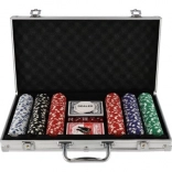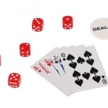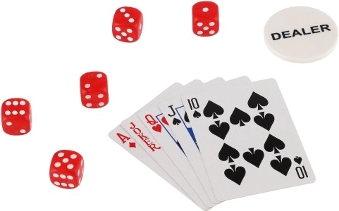 Le set comprend 300 jetons en cinq couleurs différentes, deux jeux de cartes et cinq dés, ce qui permet de jouer à divers jeux de cartes et de dés.