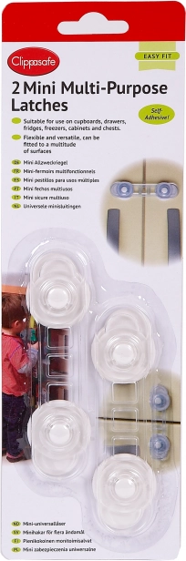 La sécurité polyvalente Clippasafe est facile à utiliser et aide à empêcher les enfants d’ouvrir les armoires, tiroirs, réfrigérateurs, congélateurs, placards et coffres.