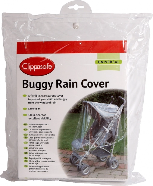 La housse de pluie transparente CLIPPASAFE couvre efficacement la poussette et l’enfant contre la pluie et le vent, pour profiter de la promenade sans compromis.