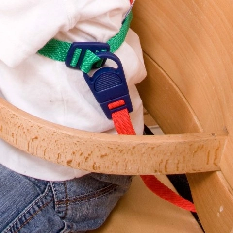 Attache fiable dans la chaise haute ou la poussette, et assurance lors de la marche en ville ou dans les magasins.