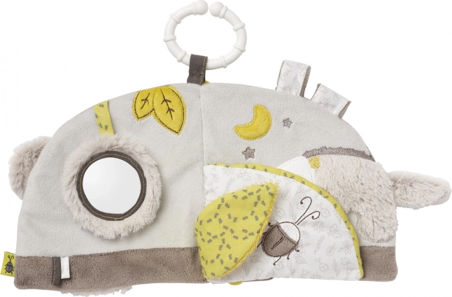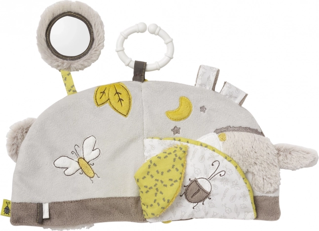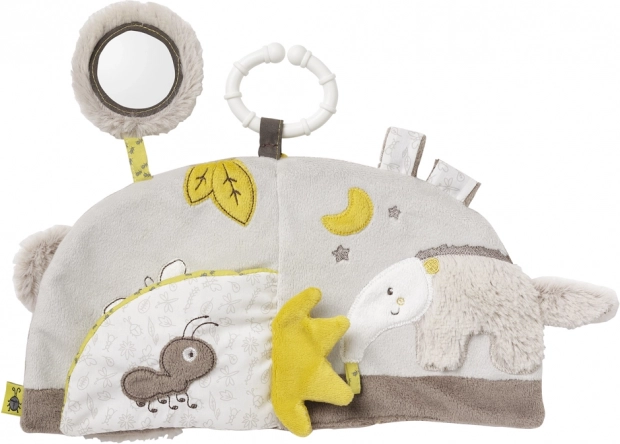 Ce livre en peluche créatif est idéal pour stimuler et développer les sens de l’enfant. Grâce à sa boucle pratique, vous pouvez l’utiliser non seulement dans la poussette, mais aussi dans le lit, en voiture, ou partout où cela sera nécessaire. Son design visuel attrayant, l’utilisation des couleurs et le petit miroir captiveront les yeux curieux des enfants. Les différents matériaux utilisés et le grelot attireront l’attention de leurs petites oreilles.