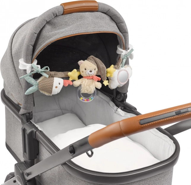 Cette chaîne de poussette aux motifs d’étoiles et de nuages est idéale pour divertir et stimuler l’enfant pendant les promenades. Grâce à deux clips faciles à utiliser, elle se fixe rapidement à la poussette, au lit bébé ou au siège. Sa longueur de 45 cm assure l’accès aux différents éléments, ce qui motive l’enfant à les explorer et améliore sa motricité.