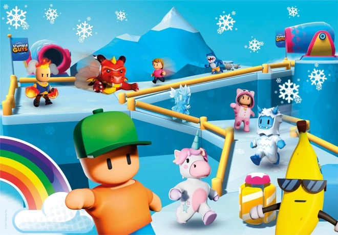 Amusant puzzle pour enfants avec le motif STUMBLE GUYS comprenant 180 pièces solides qui, une fois assemblées, forment une image d’environ 48,5 × 33,5 cm. Le coffret inclut en plus un autocollant exclusif comme joli bonus. Idéal pour développer la patience, la logique et la motricité fine.
