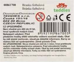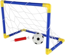 Le set comprend toutes les pièces nécessaires pour construire le but, y compris le filet, le ballon de football et la pompe pour le gonfler. La construction portable permet une manipulation et un jeu faciles partout - dans le jardin, sur le terrain, ou même dans le parc.