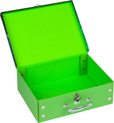 Grâce à la poignée et au fermoir en métal, la valise est facilement transportable et tout est bien sécurisé.