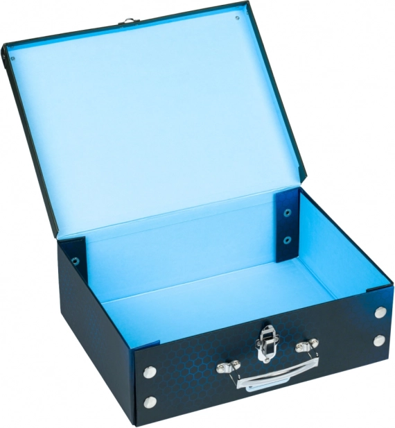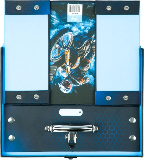 La valise scolaire pliable avec un motif de motocross est faite de papier laminé de haute qualité avec des coins garnis pour une durabilité accrue. Elle offre une option pratique de pliage et de dépliage grâce aux boutons pression, ce qui facilite le stockage et le transport. La poignée métallique et la boucle classique assurent une manipulation facile et une fermeture sécurisée du contenu.