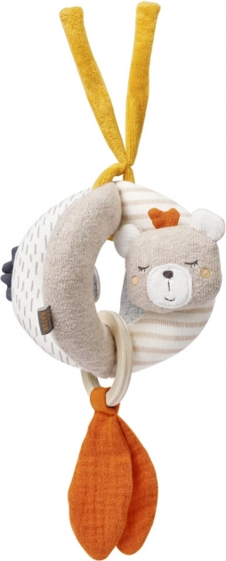 Ce mignon ballon à suspendre est fabriqué en coton biologique 100 %. Il est facile à saisir, stimule la curiosité naturelle et la motricité fine des jeunes enfants. La balle comprend aussi un grelot et un anneau en bois pour favoriser la coordination. Grâce à sa taille pratique et à ses rubans de suspension, le ballon se fixe facilement au lit bébé, à la poussette ou au siège auto, pour que l’enfant l’ait toujours à portée de main.
