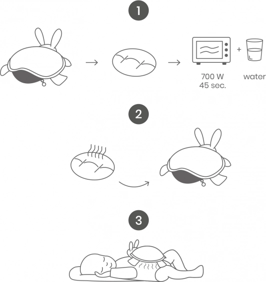 Le coussin amovible se réchauffe en quelques dizaines de secondes et offre à bébé une chaleur agréable et durable en un rien de temps.