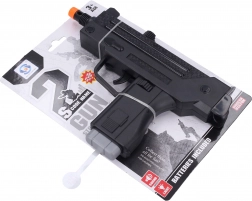 Ce pistolet en plastique est idéal pour les petits combattants qui aiment viser et tirer. Grâce à ses effets sonores et lumineux, il offre une expérience de jeu réaliste et garantit beaucoup de divertissement. Convient aux enfants à partir de 3 ans.