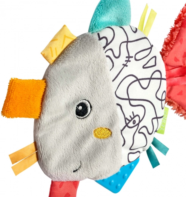 Hochet en peluche avec de nombreux éléments d’activité comme du papier crépitant, un anneau de dentition, un mélange de matières. Le jouet à saisir stimule l’ouïe de l’enfant, la vue, le toucher et une prise saine – idéal comme cadeau pour les garçons et les filles pour une naissance, un anniversaire ou un baptême.