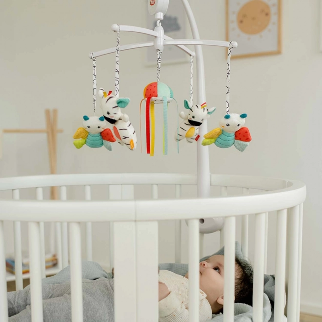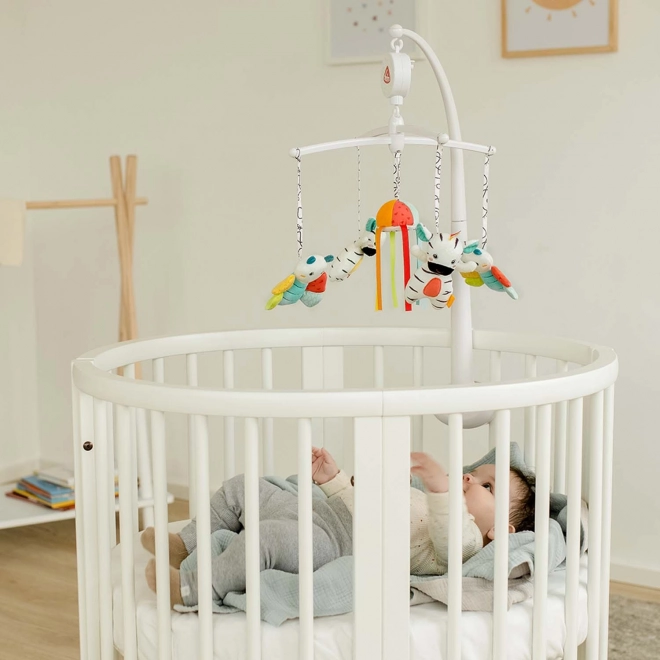 \nLe design du mobile facilite la fixation au lit de bébé – les figurines peuvent être facilement retirées pour jouer et pour le lavage.