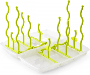 Les tiges hautes maintiennent les biberons en toute sécurité, les plus basses sont idéales pour les tétines, couvercles et bagues. Tout sèche de manière ordonnée au même endroit.