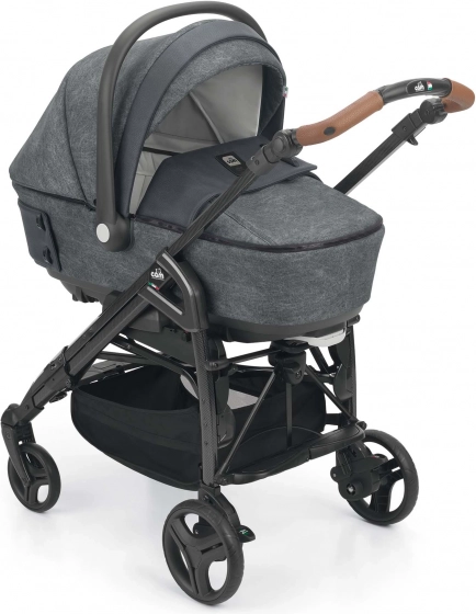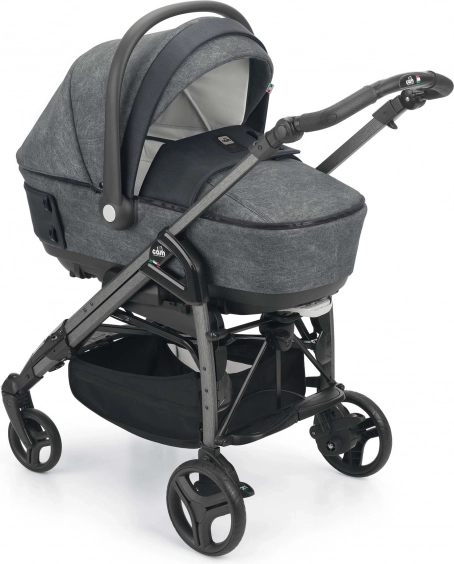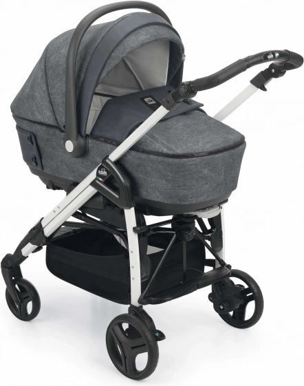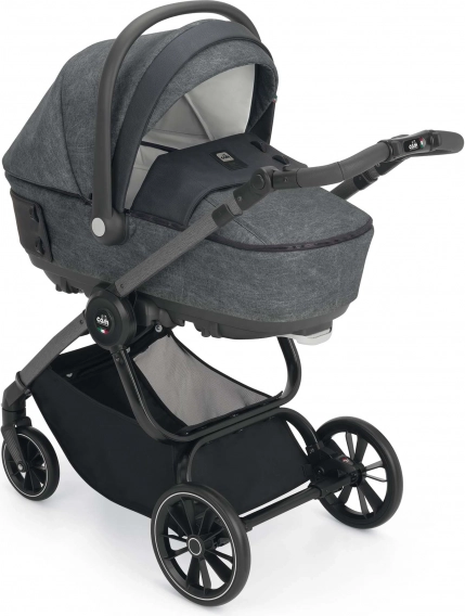 Nacelle spacieuse au look moderne avec des accessoires sous forme de boutons originaux. L‘habillage de la nacelle se détache facilement grâce aux fermetures éclair. Grâce à l’aération sur le canopy, elle est idéale même pour les mois d’été. Après déploiement des patins situés sous la nacelle, celle-ci peut aussi servir de berceau. À l’aide d’une sécurité au bas de la nacelle, il est possible de régler la hauteur de la tête de l’enfant. La nacelle dispose d’un système simple de détachement du châssis, avec une seule sécurité, pour une manipulation encore plus sûre de la nacelle et de l’enfant.
