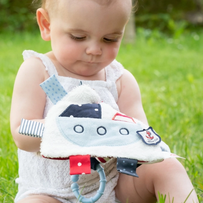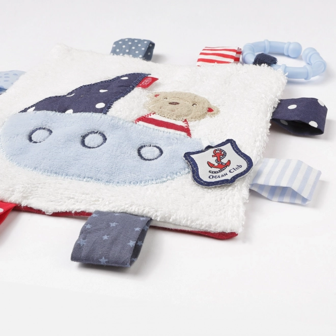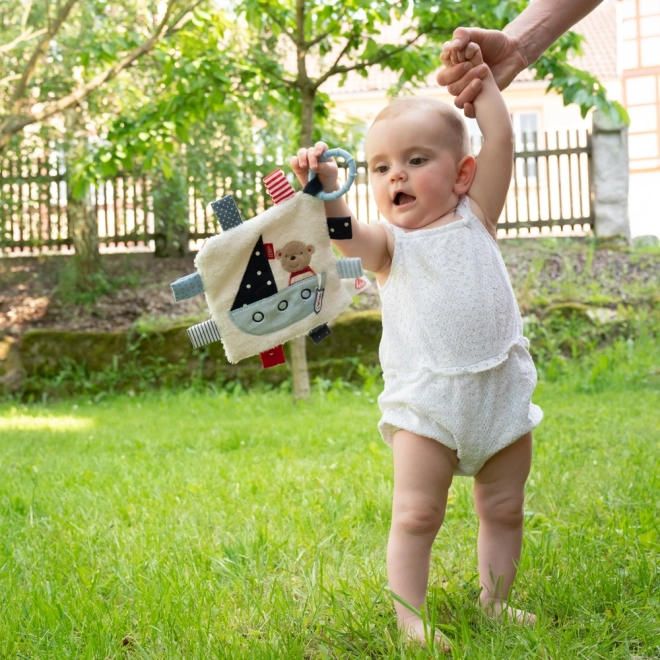 Le doudou câlin peut être facilement fixé sur la poussette, le siège auto ou le berceau, ce qui le rend idéal à la maison ou en voyage. Le design marin avec un charmant nounours dans un bateau garantit toujours une bonne humeur à votre enfant.
